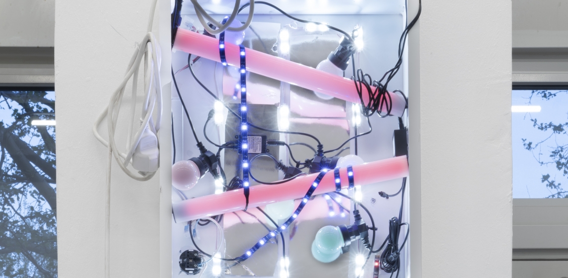 Ella C Bernard est une artiste qui pratique la sculpture, l’image en mouvement et les formes textuelles. Ses installations nouent, scotchent, assemblent et tordent des objets collectés ou récupérés, auxquels s’ajoutent parfois des éléments en céramique, métal ou béton. Plutôt qu’une simple esthétique de la récupération, son travail traduit une volonté de réappropriation des espaces. Habituellement relégués à l’invisible, les rebuts industriels et les produits de consommation abandonnés, rejetés ou promis à l’obsolescence révèlent des systèmes cachés ou marginalisés qui participent pourtant activement à l’organisation des flux (électriques, hydrauliques ou de télécommunication) soutenant notre société contemporaine.